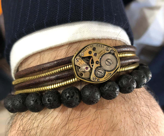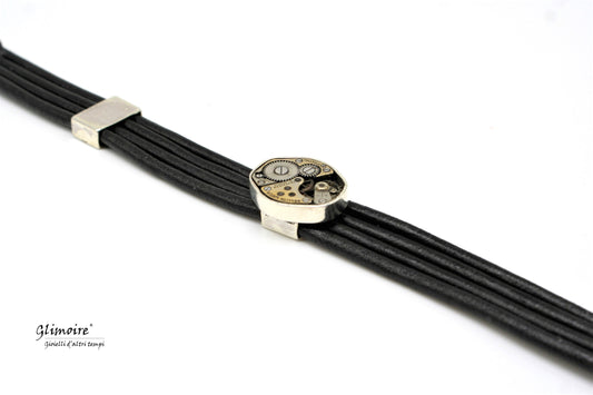 Bracciale in cuoio e meccanismo di orologio d'epoca art.235
