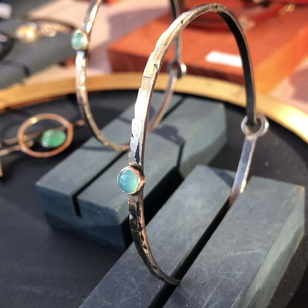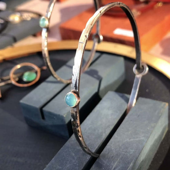 Il bracciale è realizzato a mano in tutte le sue fasi con tecniche di oreficeria tradizionale. Ho inserito il Calcedonio, una pietra che rimanda alla serenità ed armonia. Su richiesta è possibile realizzare questo bracciale anche con altre pietre .