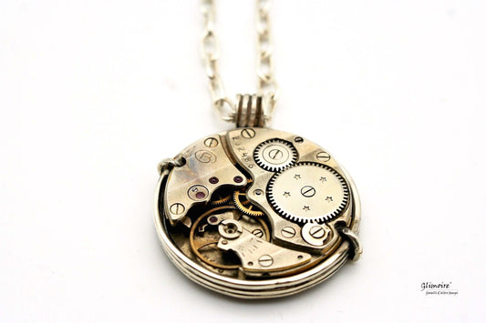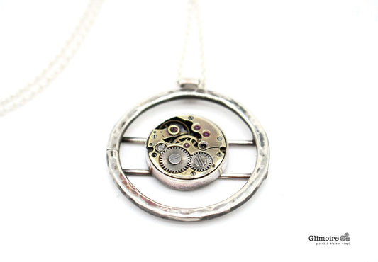 Medaglione con cerchio battuto e meccanismo d'orologio d'epoca art.293