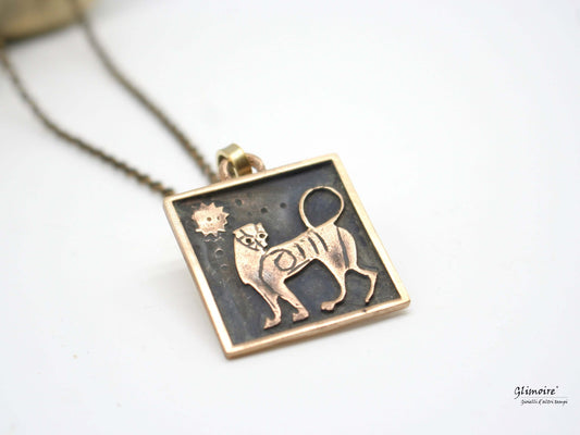 Leone etrusco - Pendente quadrato in bronzo art.112